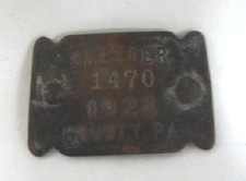 1922 antique BRASS DOG TAG LICENSE chester county pa METAL #789