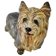 Antique Fabulous Ceramic Yorkshire Terrier Dog Gray Figurine Statue 16.5"