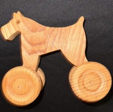 Vintage Handcrafted Folk Art Wooden Pull Toy Scottish Terrier Scottie Dog Wheels