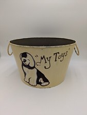 Vintage Metal Dog Toy Pail, Cute Pup With "My Toys" On Front, Sku-V2