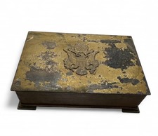 Antique US Army Great Seal Eagle Brass Footed Cigarette Box Wood Lined Military