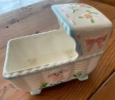Vintage Ceramic Baby Planter Music Box Bassinet Giftware Nancy Pew E1