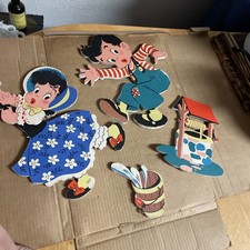 Vintage 1950's Dolly Toy Company Mother Goose Nursery Rhymes Wall Decor 9 Pieces
