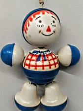 Vintage Celluloid Plastic Raggedy Ann Andy Doll Rattle Crib Baby Toy