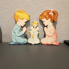 Vintage Dolly Toy Praying Boy and Girl Wall Art Set