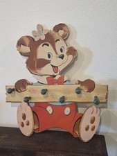 VTG BEAR CLOTHES RACK Dolly Toys Tidee Ups Nursery Wall Peg Coat Wood