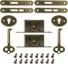 2 Sets Antique Skeleton Key Lock Antique Cabinet Cupboard Furniture Decorativ...