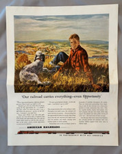 1940s AMERICAN RAILROADS Promotional POSTER Train DOG & BOY Vintage Advertising