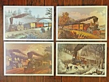 VTG 4 Train Advertising Print Placemat Set Currier & Ives Wall Hanging Sign Art