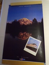 AMTRAK Railroad ADVERTISING TRAVEL POSTER Mount Ranier Washington Mt Railway