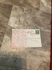 ANTIQUE US 1908 BENJAMIN FRANKLIN 1 CENT GREEN STAMP ON POSTCARD UNCANCELLED
