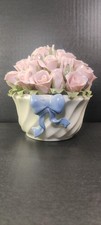 Vintage "Tea Rose" Capimonte Porcelain Rose Bouquet Basket Music Box
