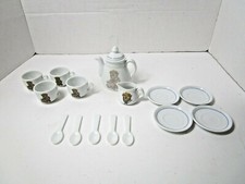 Vtg. Porcelain Toy Tea Particle 15 pc. Set Service White w/Gold Accents