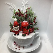 Tea Cup vintage Christmas toy Themed Fairy Garden Miniature Arrangement teacup
