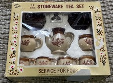 Vintage 12 Pc. Stoneware Toy Coffee Tea Set Wheat Pattern Miniature NIP