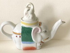Vintage Figural Painted ELEPHANT ON ELEPHANT Medium Childs Toy Teapot Made China