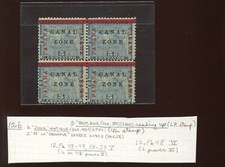 Canal Zone 12b Antique "ZONE" & "PAMANA" Reading Up Vars in Block of 4 Stamps