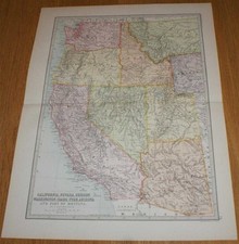 Map: 1890 USA: California, Nevada, Oregon, Idaho from Library Reference Atlas