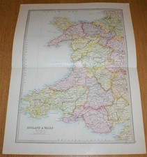 Map: 1890 England & Wales, Section 5 covering Wales from Library Reference Atlas