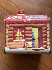 Log Cabin SYRUP 1-1/2 PINT METAL TIN CAN Graphic Advertising - 100th Anniversary