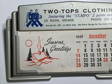 Tin Metal Calendar Sign 1969 -70 Desk Top Advertising 2 Tops Clothing