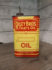 Vintage Riley Bros 1 Pint Motor Oil Can Advertising Metal Lead Top Yellow Red