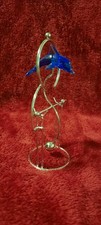 Vintage Small Blue Dolphin Jumping Through Ring Kinetic Motion Desk Toy