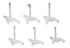 Set Of 6 Antique White Humpback Whales Ocean Marine Wall Decor Tree Ornaments
