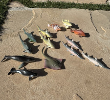 VTG 2" Miniature Animals Plastic Toys Lot Ocean Animals Sharks Wales Reef Fish