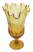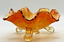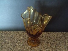 Large Fenton Mid Century Modern Amber Handkerchief Thumbprint Footed Va ID:86458