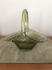 Fenton Vintage Glass Hobnail Green Large Basket w/ Handle 10" x 8"
