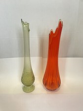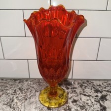 Vtg MCM Fenton Orange Amberina Flame Vase Thumbprint Handkerchief 9.5” Art Glass
