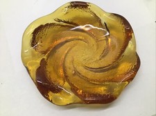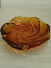 FENTON Style Amber Swirl 5 in Art Glass Trinket Dish Ashtray Mid Century Modern