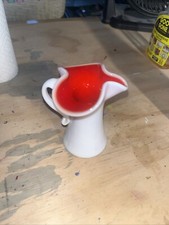 Vintage Cased Art Glass Pitcher In White - Red 3.75in. Tall Fenton?