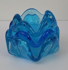 MCM BLUE ART GLASS FENTON? NESTING ASHTRAYS OR VOTIVE CANDLE HOLDERS