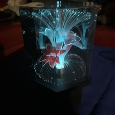 Vintage Fiber Optic Color Changing Rotating Flower Lamp With Music Box Working