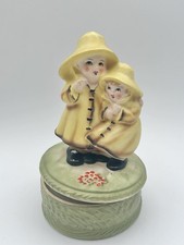 Vintage Music Box Boy and Girl With Raincoats Raindrops Keep Falling on my Head