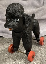 Rare 50/60's VTG Black Plastic Poodle on Red wheels Toy Nice Condition Charming