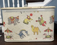 Vintage Pearl Wick Gay Time Quilted Vinyl Toy Chest Hamper Box Circus Clown Zoo