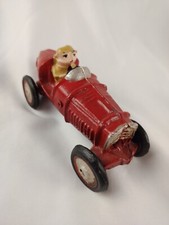 Vintage cast iron toy race car metal painted Red with Beige driver.