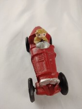 Vintage cast iron toy race car metal painted Red with Tan driver.