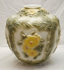 Vintage 60s Green & Yellow Floral Hanging Glass Light Globe D Ward & M Smith Co.