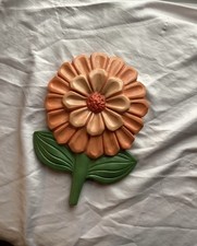 Vintage 1960s 70s Vintage Mid Century Ceramic Flower Power Wall Art Orange Fall