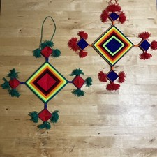 VTG Gods Eye Geometric Yarn Art Wall Hanging Mid Century Modern MCM Psychedelic