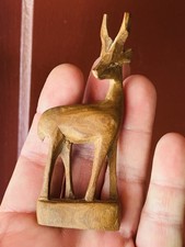 Vintage Deer Buck Mid Century MCM Wood Hand Carved Deer Figurine 4" Tall