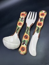 Vintage MCM Set 3 Wall Hangings. Fork, Knife, Ladle. 16 1/2" SUNFLOWER.