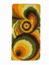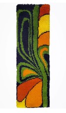 Handmade wool Rug wall hanging green orange vintage Mid Century Pop Art 60s 70s