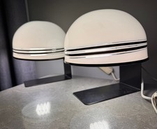 Vintage Pair Of Mid Century Lamps Space Age Metal Base Plastic Shades