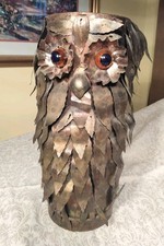 Brutalist Mid Century Modern Enesco Jere Era Owl Metal Umbrella Stand W Drip Pan