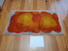 RARE Vintage Mid Century retro 70s rya Shag Dralon German Yel Org Abstract Rug!